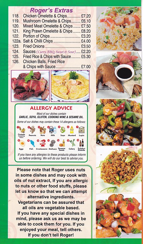 Welcome to the Menu Website of Roger's, Porthcawl.